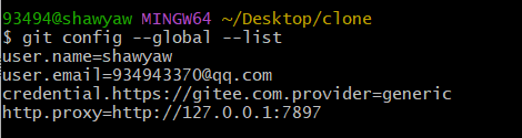 git config --global --list配置中出现 http.proxy=http://127.0.0.1:7897 则代表设置成功